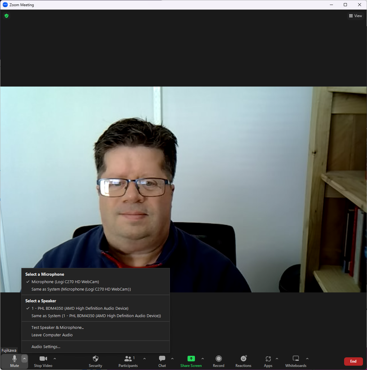 Audio and video settings are accessed by clicking on the little arrows at the right of the microphone and camera icons at the bottom of the screen. Sometimes selecting the correct device is all you need, but you can also test them before getting started to make sure it is all working. If you are unsure it pays to join the meeting early and run through these tests just to make sure.